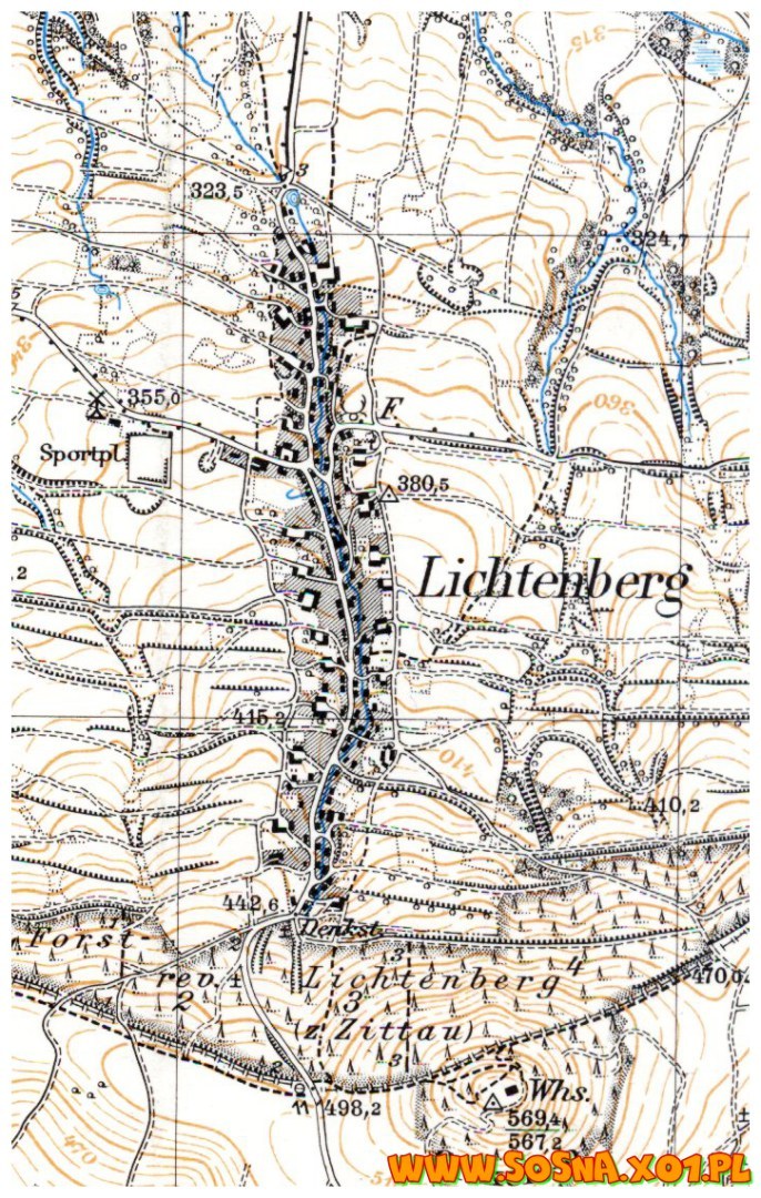 Na jego północnym zboczu, prostopadle do linii granicy rozciąga się na wys. 370-450m n.p.m. Jasna Góra. Jej ostatnie zabudowania stykają się z dolną krawędzią lasu porastającego stoki, po których spływa kilka wartkich strumieni. W chwili obecnej wieś liczy nieco ponad dwustu mieszkańców i jest najmniejszą wsią gminy. Cztery kilometry poniżej zaczynają się zabudowania Bogatyni.